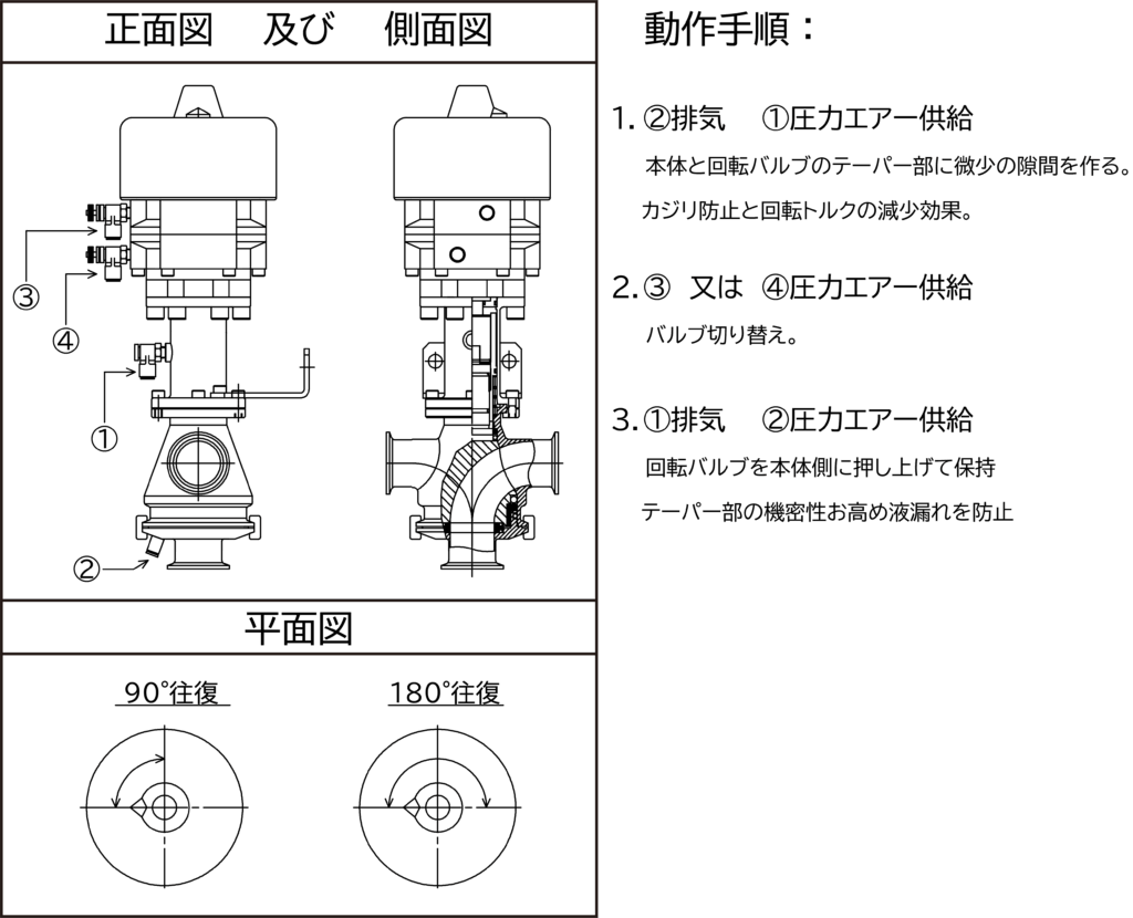バルブコーンの回転の為、エアーシリンダーを使用しています。