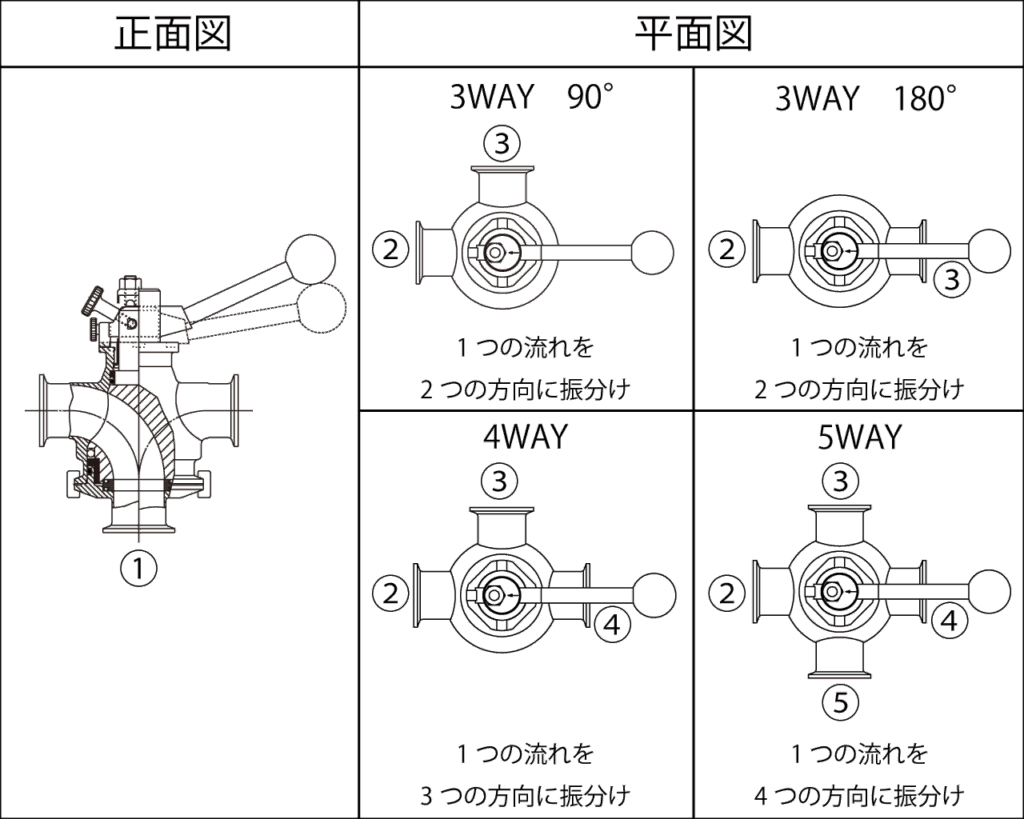 ▶ 5 WAY:1つの流れを4つの方向に変更できます。